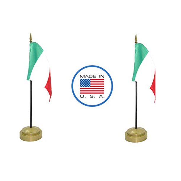 Made In The Usa 2 Italy Rayon 4 X6 Miniature Office Desk Little Hand Waving Table Flags Includes 2 Bronze Flag Stands 2 Small Mini Italian Stick Flags Walmart Com Walmart Com