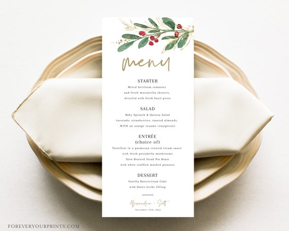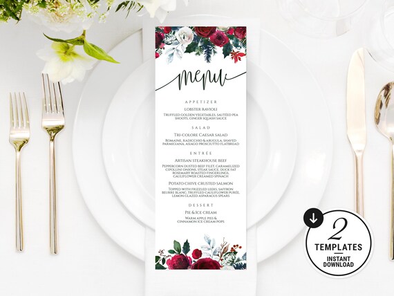 Menu Template Winter Wedding Menu Christmas Dinner Menu Printable Diy Holly Menu Instant Download Editable Text 2 Sizes 071 133wm