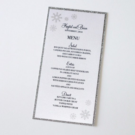 Printed Dinner Menu Silver Snowflake Menu Custom Wedding Menu Winter Wonderland Menu For Winter Wedding And Events By I Do Artsy Weddings Catch My Party