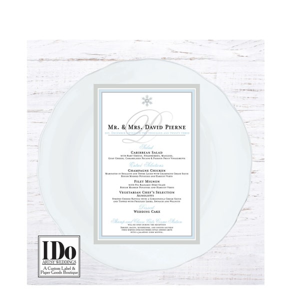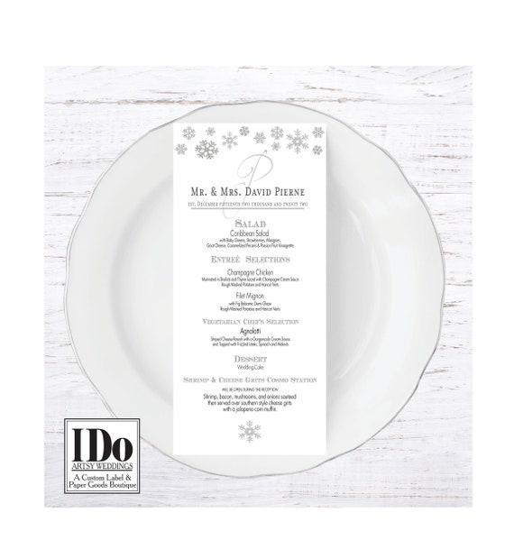 Printed Dinner Menu Snowflake Menu Custom Wedding Menu Winter Wonderland Menu For Winter Wedding And Events By I Do Artsy Weddings Catch My Party