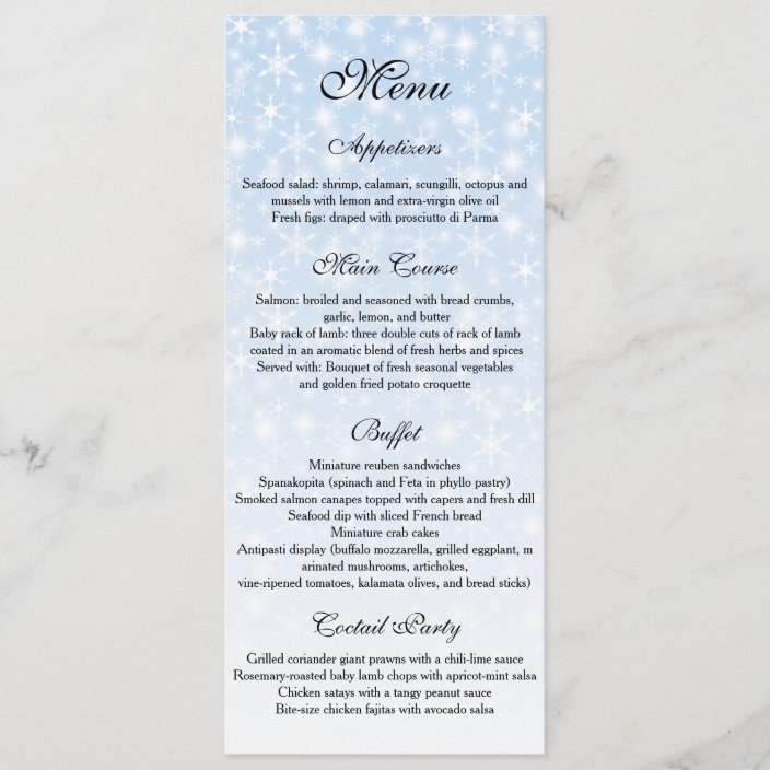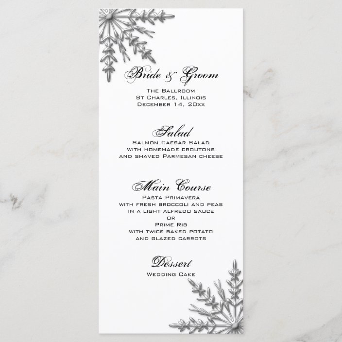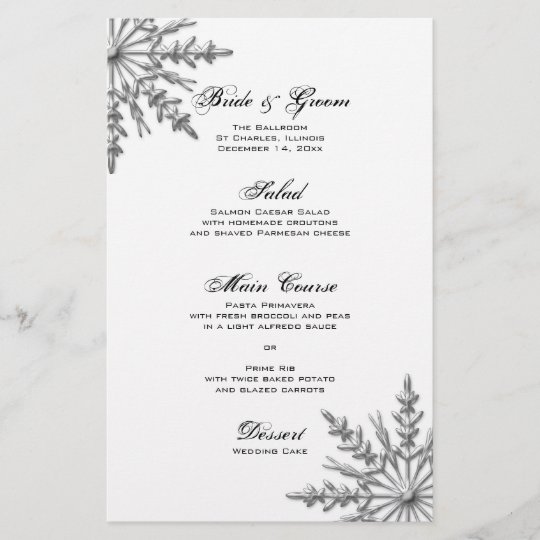 Silver Tone Snowflake Winter Wedding Menu Zazzle Com