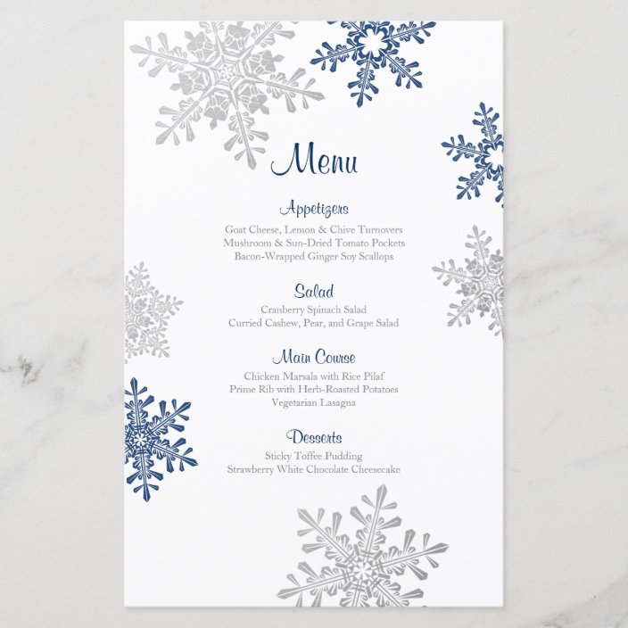 Navy Blue Silver Snowflake Winter Wedding Menu Zazzle Com