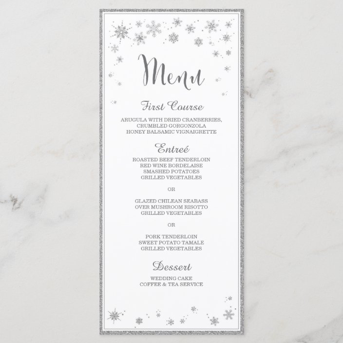 Faux Silver Snowflakes Winter Wedding Menu Zazzle Com