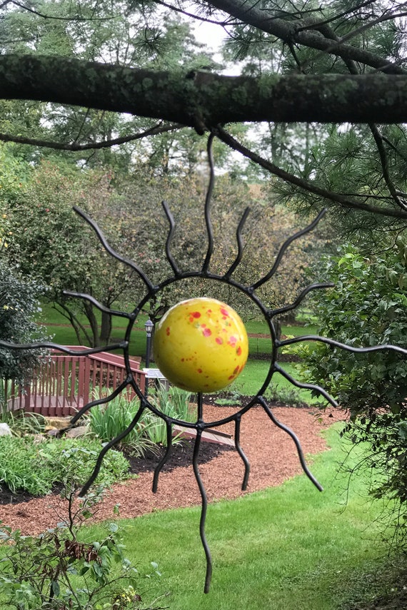 Sunsun Metal Sculpture W Yellow Pottery Ballgarden Etsy