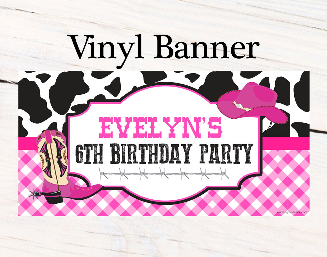 Western Cowgirl Birthday Banner Personalized Pink Cowgirl Party Banners Girls Birthday Banner Custom Personalized Banner