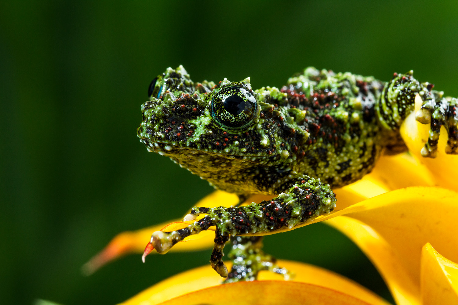 Vietnamese Mossy Frog On Yellow Flower Photograph For Sale As Fine Art