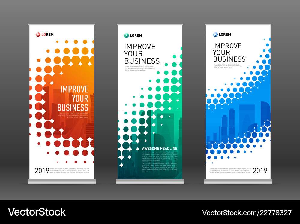 Halftone Roll Up Banner Design Templates Set Stock Vector C Sundali