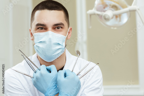 Wolverine Dentist Cropped Closeup Of A Male Dentist Posing With Dental Tools Like Wolverine Wearing A Surgical Mask Buy This Stock Photo And Explore Similar Images At Adobe Stock Adobe Stock