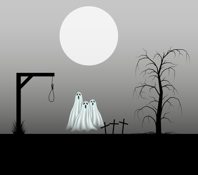 Spooky Background With Three Ghosts Royalty Free Vector