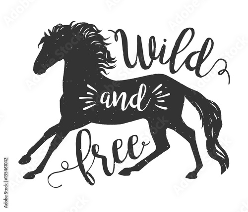 Vector Running Horse Silhouette With Text Inspirational Design For Print Banner Poster Wild And Free Galloping Horse Buy This Stock Vector And Explore Similar Vectors At Adobe Stock Adobe Stock
