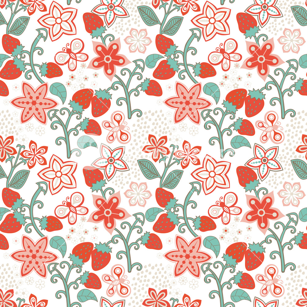 Floral Seamless Texture With A Strawberry Bright Background Royalty Free Stock Image Storyblocks