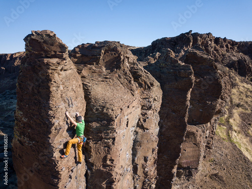 Aerial View Of A Rock Climber Climbing A Steep Cliff During A Sunny Winter Day Taken In Frenchman Coulee Vantage Washington America Buy This Stock Photo And Explore Similar Images At