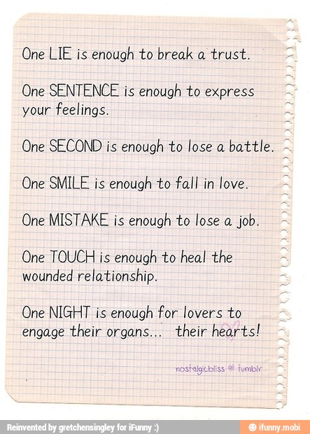 One Lie Is Enough To Break A Trust One Sentence Is Enough To Express Your Feelings One Second Is Enough To Lose A Battle One Smile Is Enough To Fall In Love