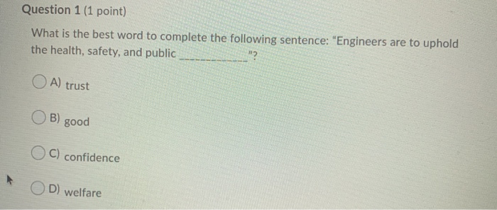 Solved Question 1 1 Point What Is The Best Word To Comp Chegg Com