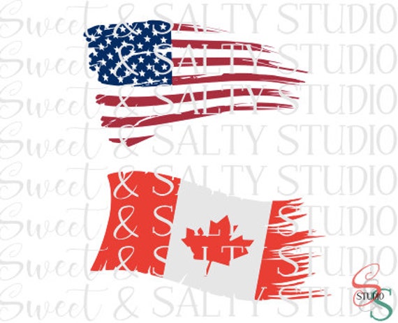 Tattered Usa Flag And Canadian Flag Digital File Etsy
