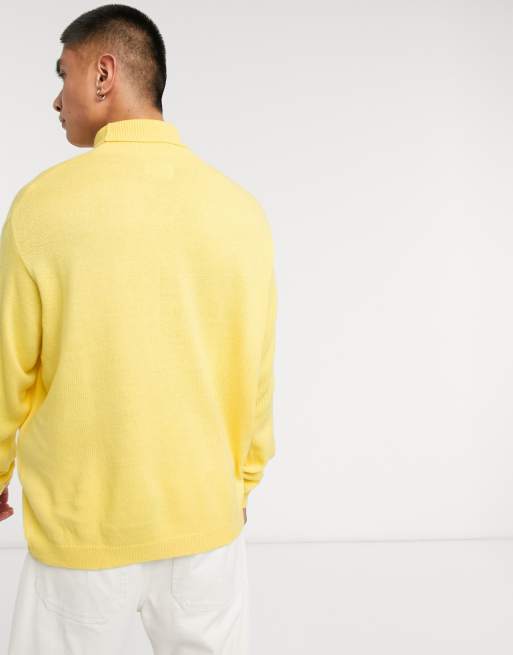 Asos Design Knitted Oversized Funnel Neck Sweater With Club Design In Yellow Asos