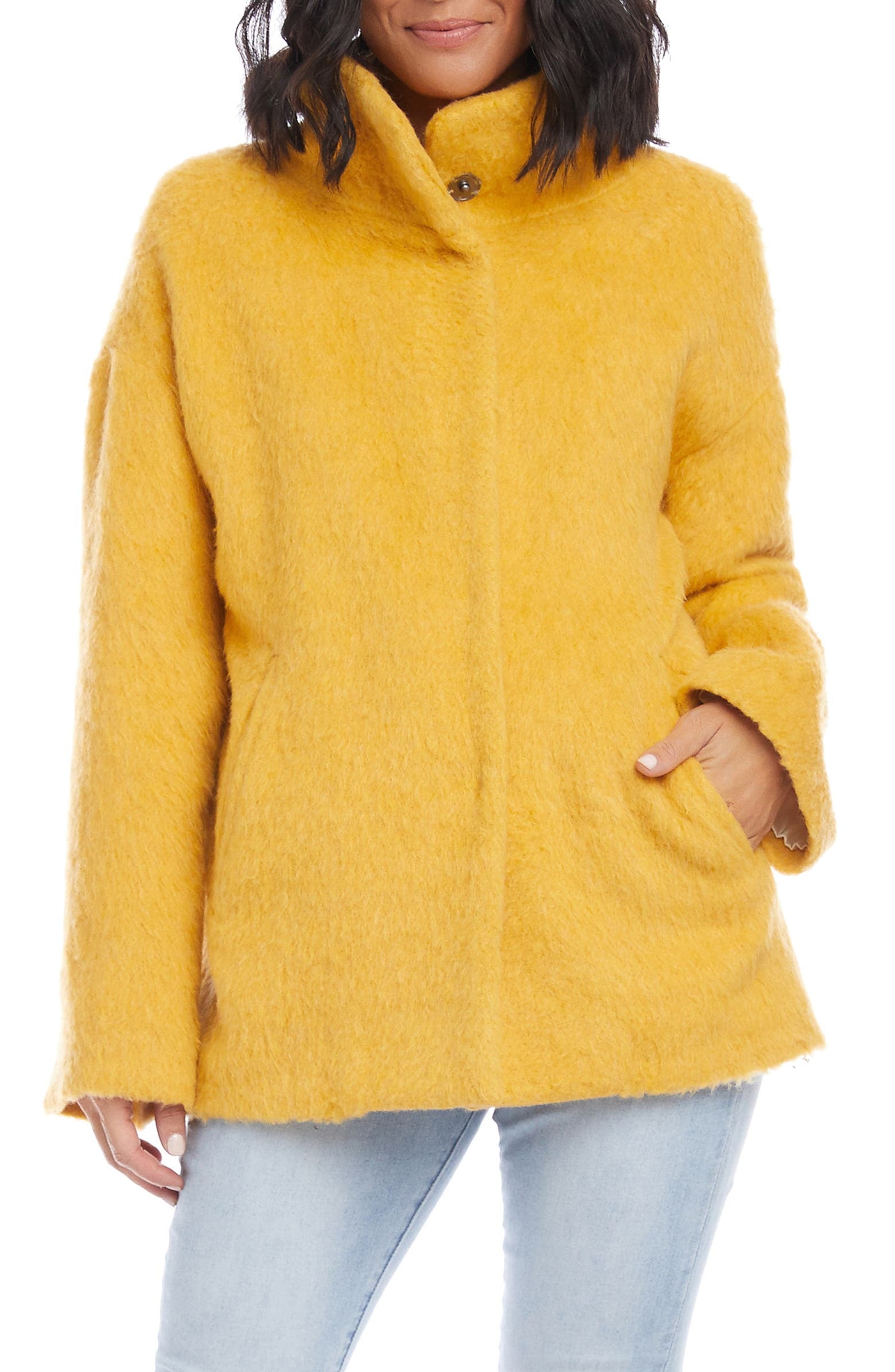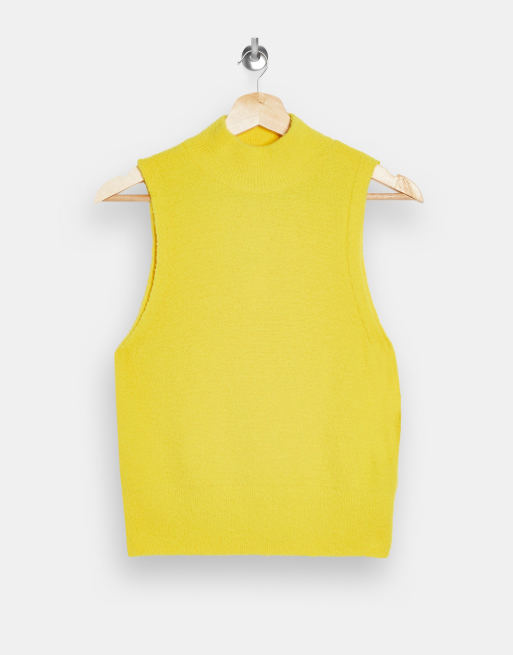 Topshop Sleeveless Fluffy Funnel Neck Tank In Yellow Asos