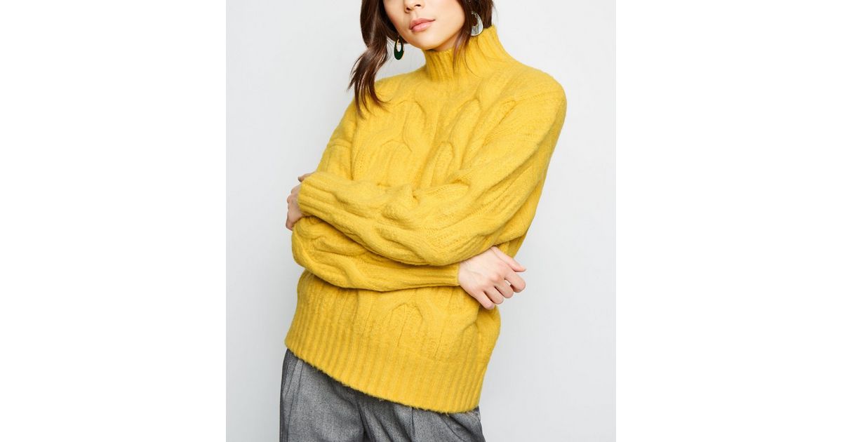 Yellow Funnel Neck Cable Knit Jumper New Look