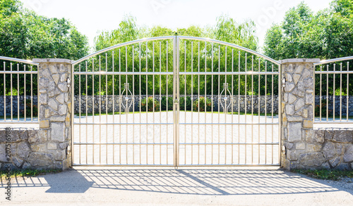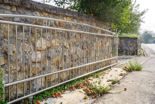 Chrome Fence Gate Chromium Stainless Steel Fence And Stone Wall Buy This Stock Photo And Explore Similar Images At Adobe Stock Adobe Stock