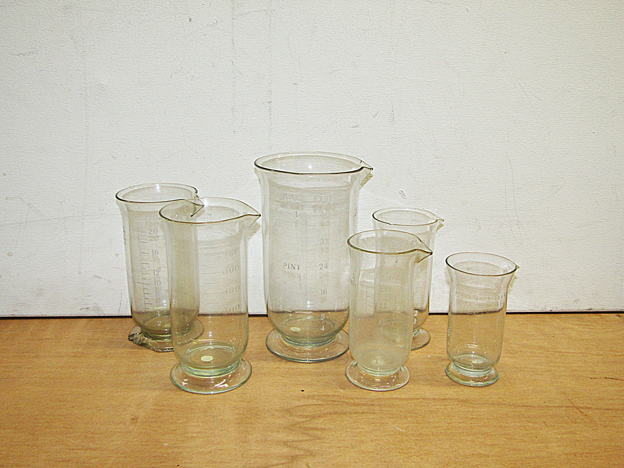 Old Antique Lab Glass Beakers Graduated Size Pharmacy Bottle Measures