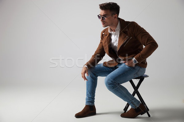 Side View Of A Young Man Wearing Sunglasses And Leather Jacket Stock Photo Picture And Royalty Free Image Image