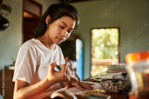 Thai Teen Girl Doing Homework And Studying At Home Buy This Stock Photo And Explore Similar Images At Adobe Stock Adobe Stock