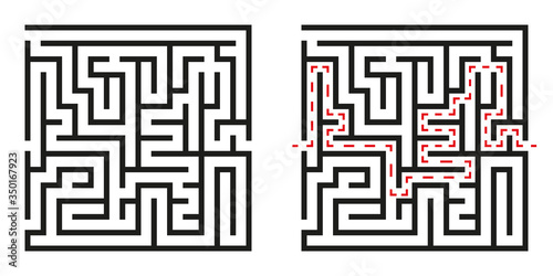 Black Square Vector Maze And Solution Isolated On White Background Black Labyrinth With Three Entrances Vector Maze Icon Labyrinth Symbol Kids Puzzle With Solution Buy This Stock Vector And Explore Similar