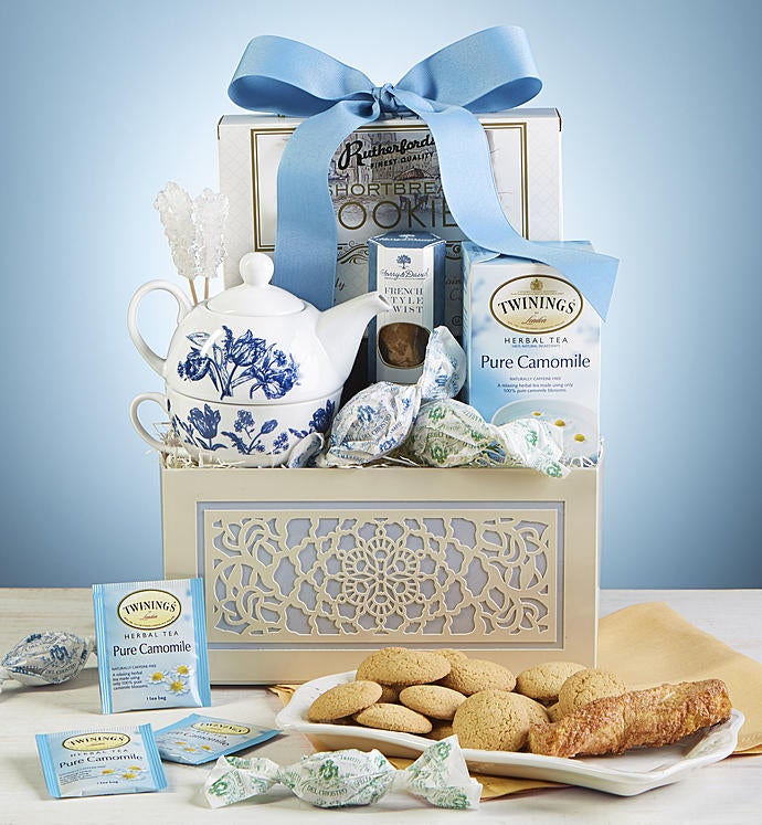 Teatime For One With Teapot Gift Basket 1800baskets Com