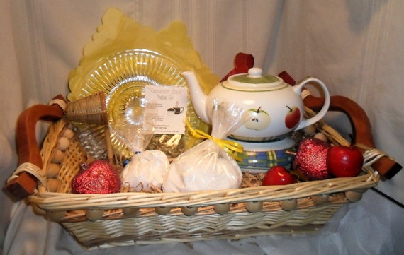 Apple Tea Pot Gift Basket Ceramic Teapot Serving Plate Etsy
