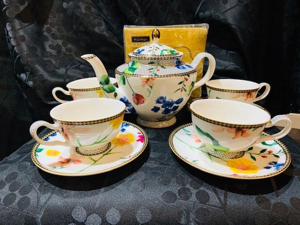 Tea Set Gift Teapot 2 Mugs Basket Tea And Cookies Vtg Unopened Ebay