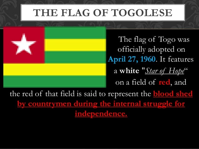 Granted independence from France in 1960, Togo has struggled to build a stable country and economy Togolese Republic 'It's sad when I sit there alone' Video Holocaust Memorial Day 21. The Togo national football team (French Équipe nationale de football du Togo) represents Togo in international football and is controlled by the Togolese Football FederationThe national football team of Togo made their debut in the FIFA World Cup in 06 Their team bus underwent a fatal attack in Angola prior to the 10 Africa Cup of NationsThey withdrew and were subsequently banned from. Togo (/ ˈ t oʊ ɡ oʊ / ()), officially the Togolese Republic (French République togolaise), is a country in West Africa bordered by Ghana to the west, Benin to the east and Burkina Faso to the northThe country extends south to the Gulf of Guinea, where its capital Lomé is locatedTogo covers 57,000 square kilometres (22,008 square miles), making it one of the smallest countries in.