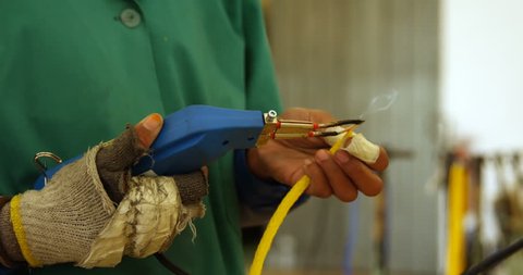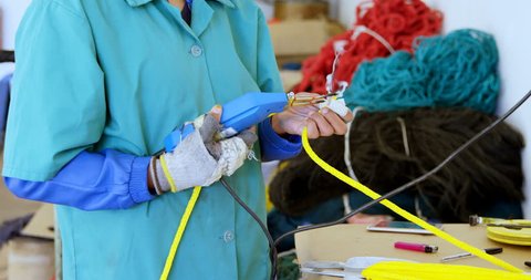Worker Using Rope Cutting Gun In Rope Making Industry 4k Stock Video Video Of Part Manufacturer