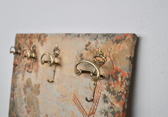 Vintage Italian Wall Coat Rack With Tapestry And Brass Plated Hangers 1970s For Sale At Pamono