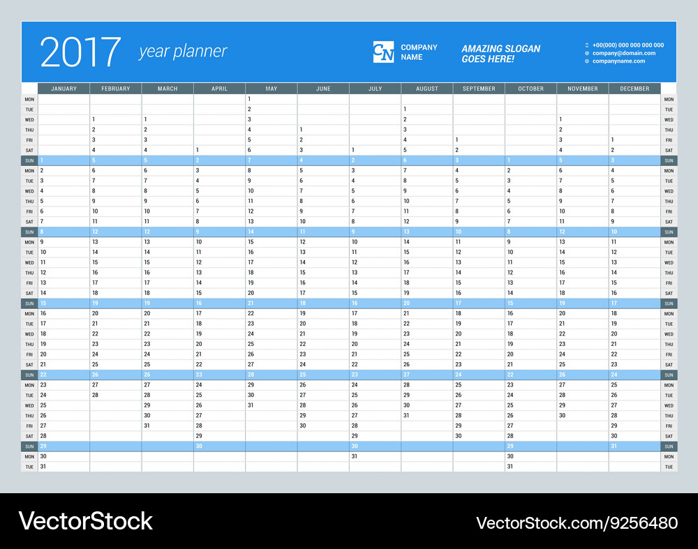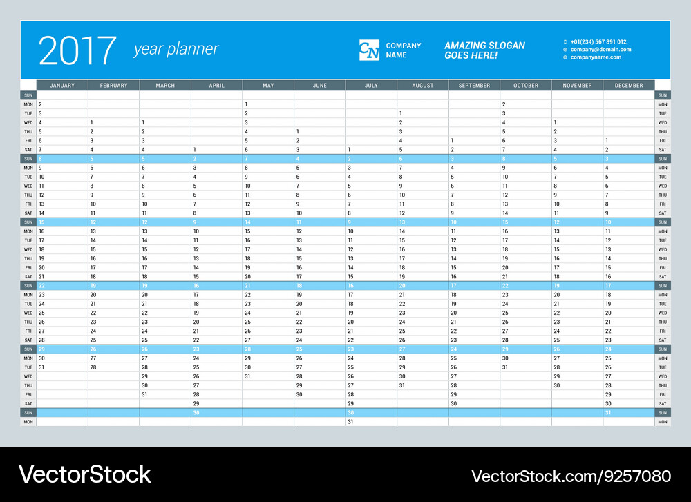 Yearly Wall Calendar Planner Template 17 Stock Vector Royalty Free