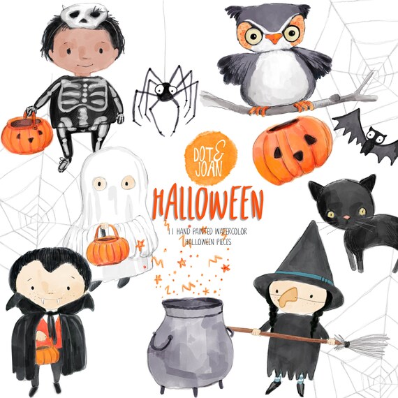 Watercolor Halloween Clipart Spider Clipart Pumpkin Etsy