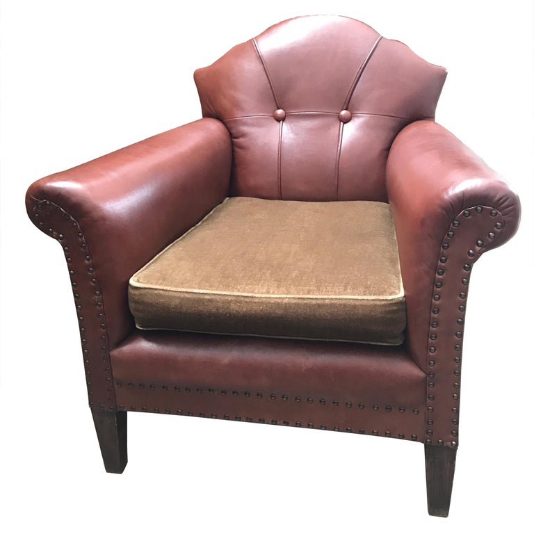 French Brass Studded Leather Chair At 1stdibs
