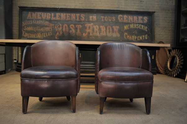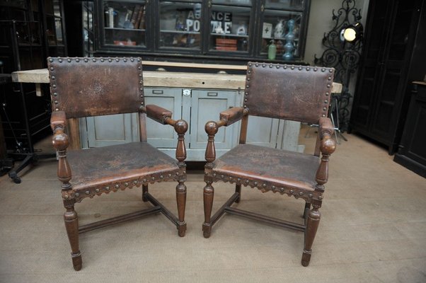 Antique Walnut And Studded Leather Lounge Chairs 1900s Set Of 2 For Sale At Pamono