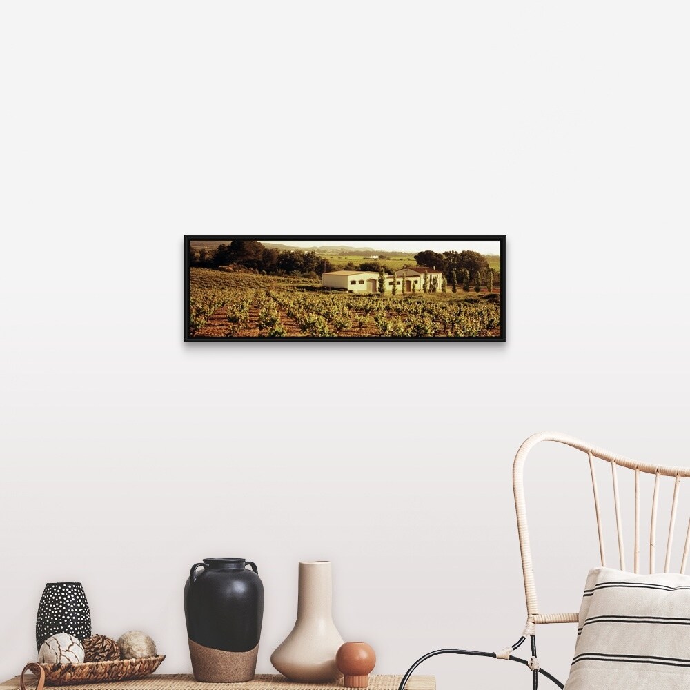 Shop Farmhouses In A Vineyard Penedes Catalonia Spain Black Float Frame Canvas Art Overstock