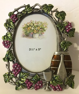 Metal Enamel Crystal Wine Themed 3 5x5 Picture Frame Grapes Leaves Vineyard Ebay
