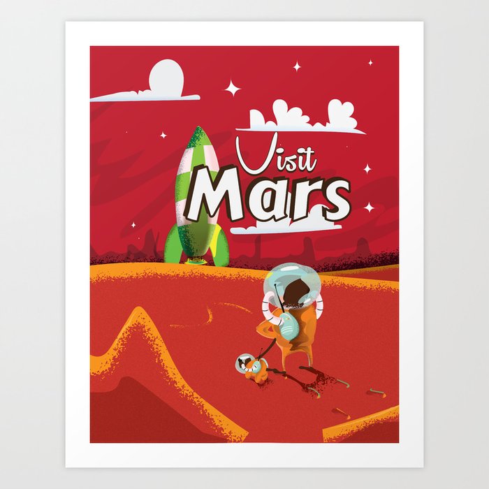 Visit Mars Vintage Cartoon Poster Art Print By Nicholasgreen Society6