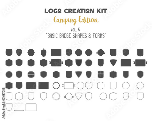 Logo Creation Kit Bundle Camping Edition Set Basic Badge Shapes Vector Forms Symbols And Elements Create Your Own Outdoor Label Wilderness Retro Patch Adventure Vintage Badges Hiking Stamps Buy This Stock