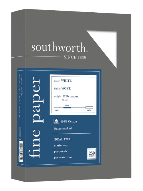 Southworth 100percent Cotton Business Paper 8 12 X 11 32 Lb White Box Of 250 Office Depot