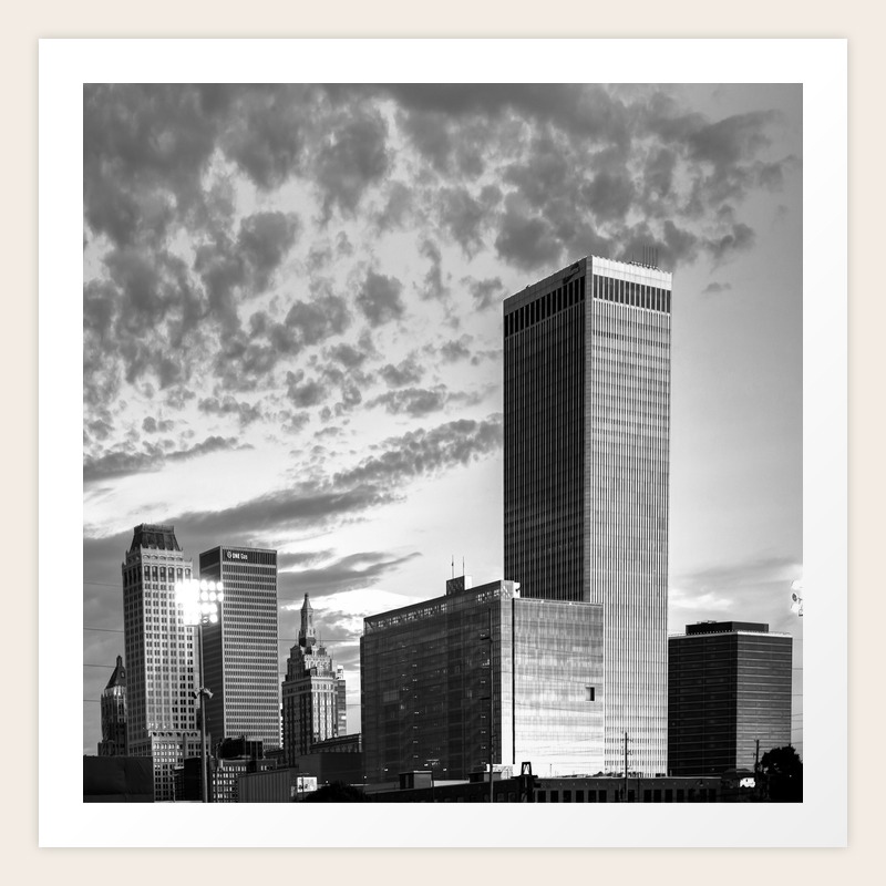Downtown Tulsa Skyline Squared In Black And White Art Print By Gregoryballosfineart Society6