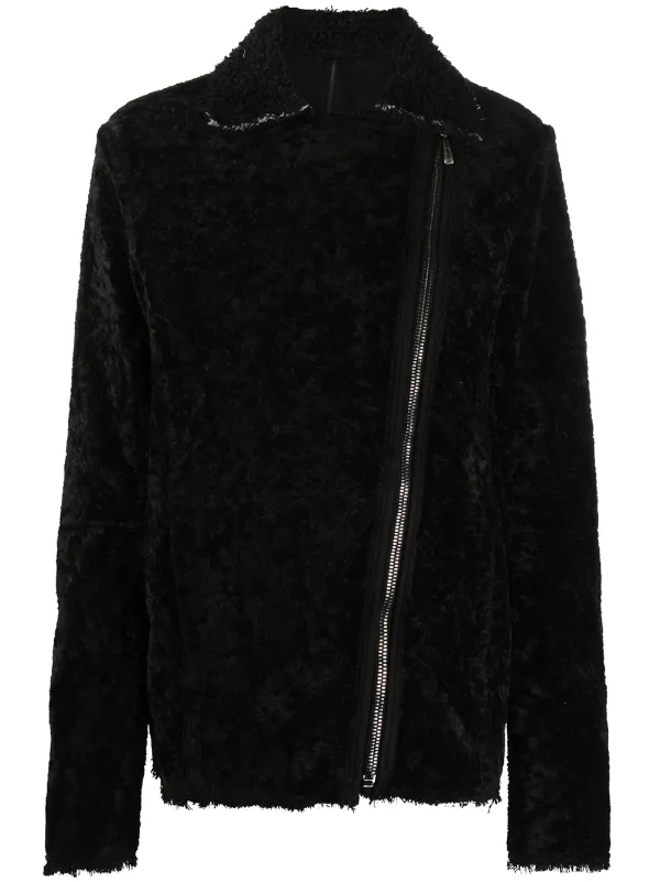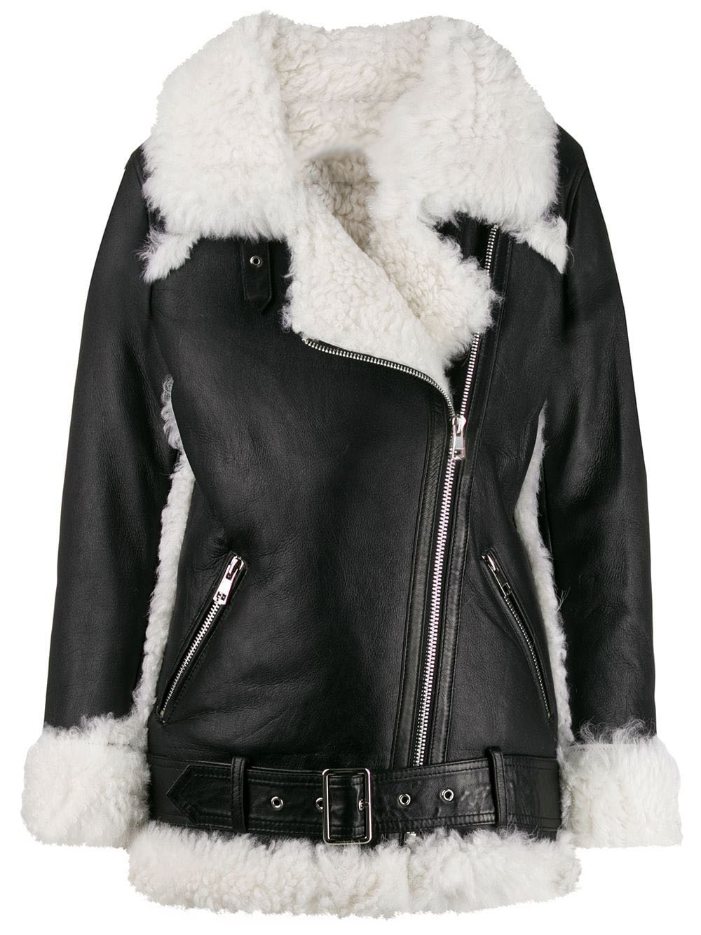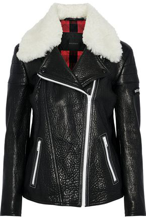 Alexander Mcqueen Jackets Black Womens Textured Leather Trimmed Shearling Biker Jacket Black Maria Murnau