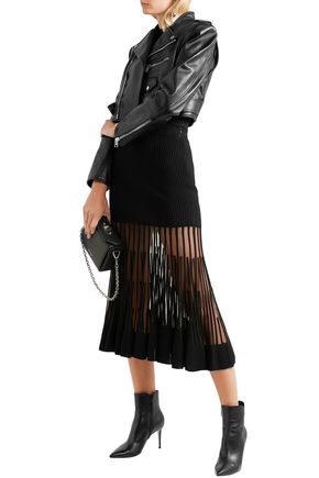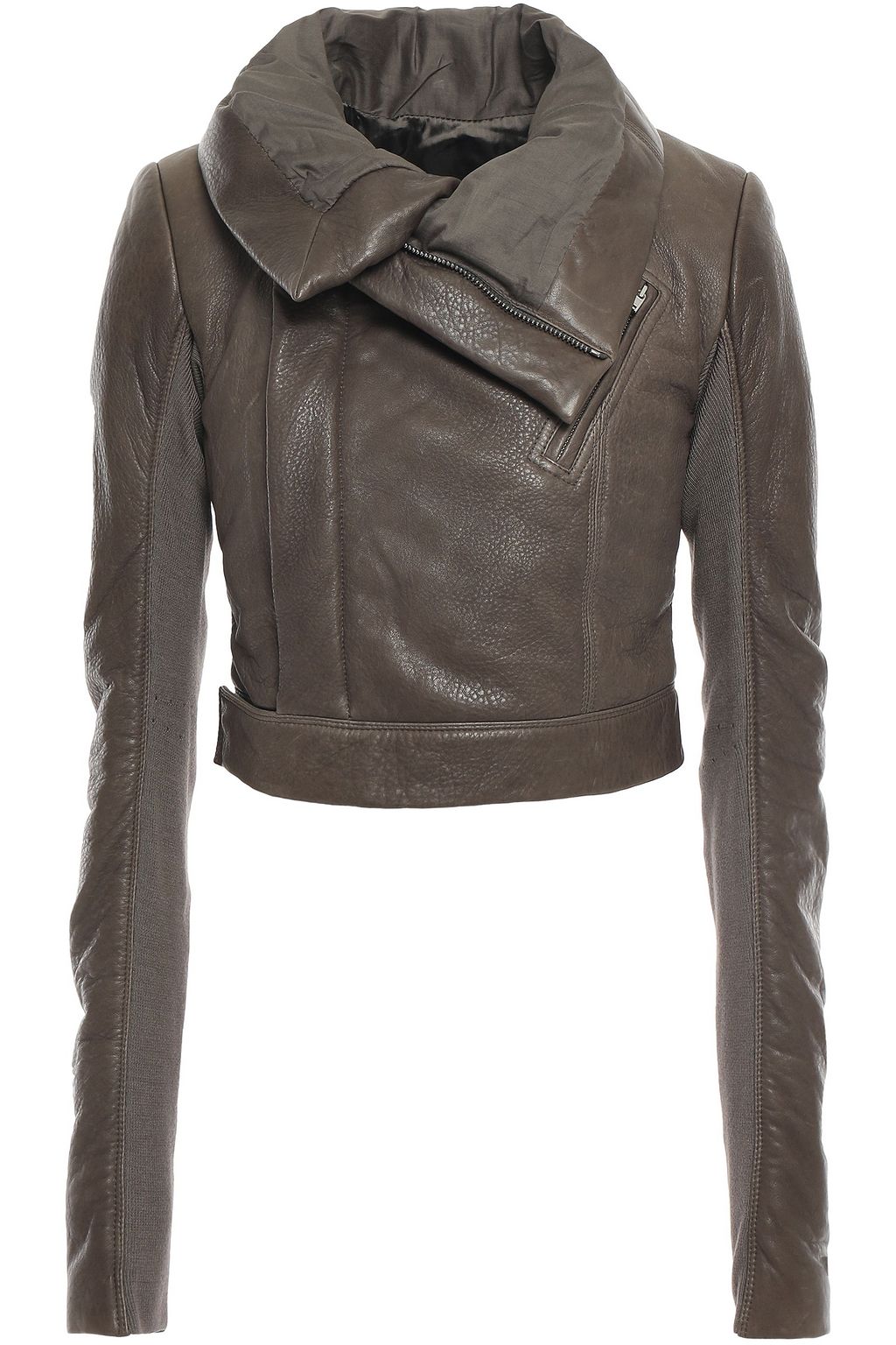 Dark Gray Cropped Knit Paneled Textured Leather Biker Jacket Sale Up To 70 Off The Outnet Rick Owens The Outnet
