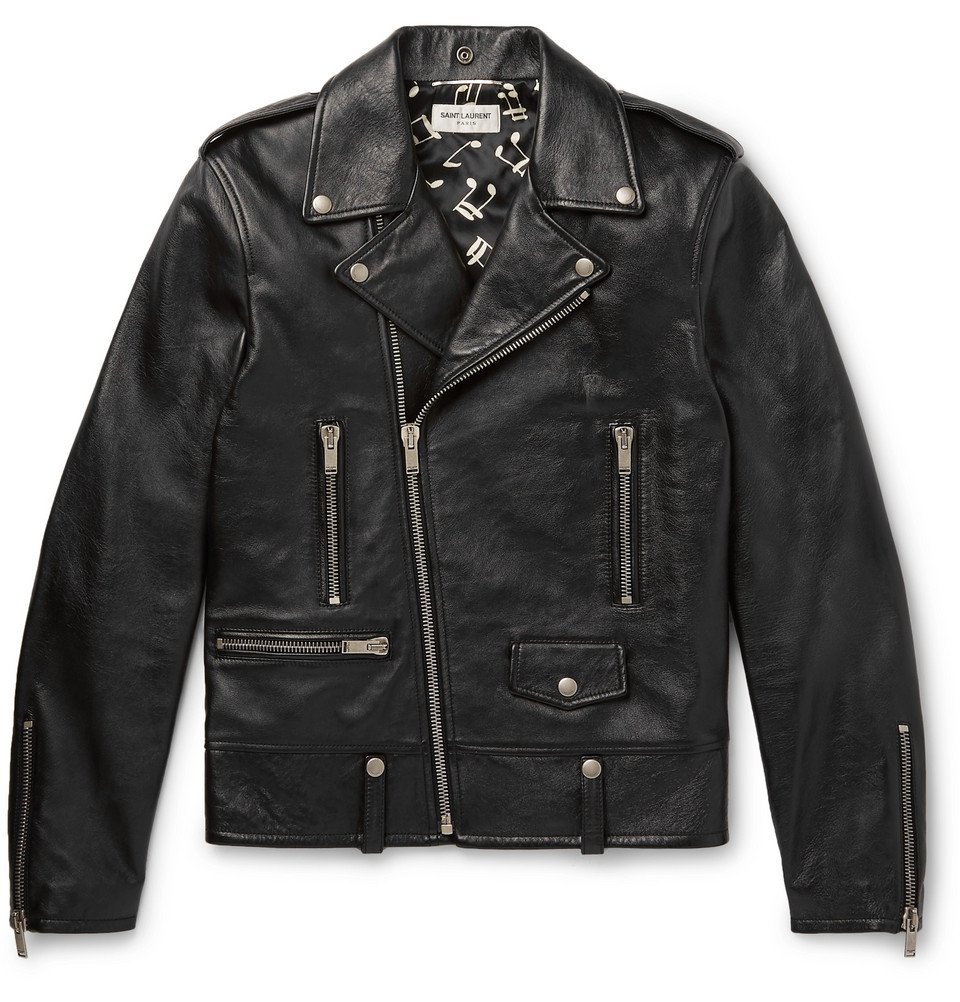 Saint Laurent Slim Fit Textured Leather Biker Jacket Black Saint Laurent