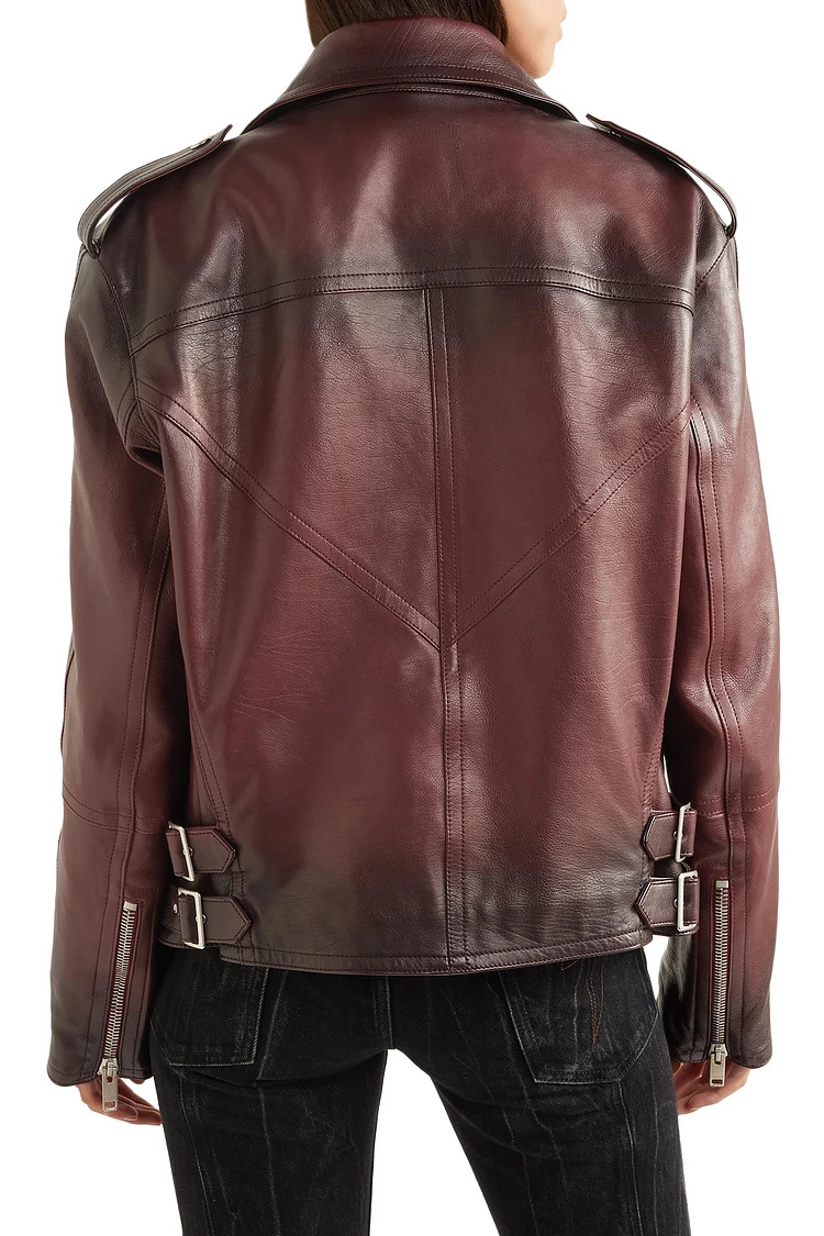 Oversized Textured Leather Biker Jacket Jackets Maker