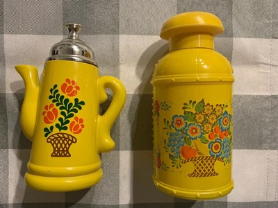 Vintage Avon Yellow Coffee Pot Bottle Floral Design And Yellow Milk Jug Retro Ebay