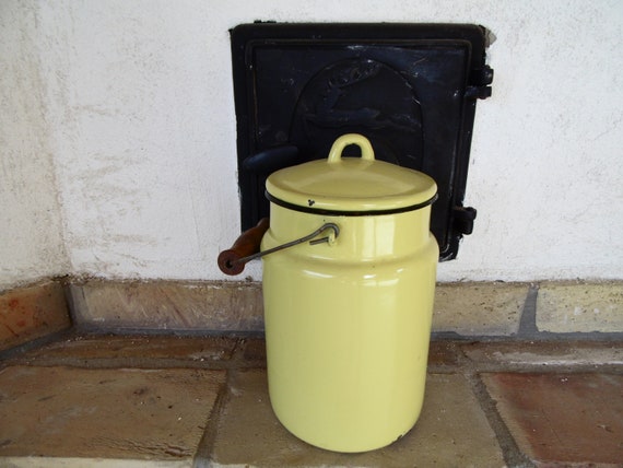 Enamel Milk Can Yellow Milk Can Rustic Flower Vase Milk Jug Kitchen Canister French Kitchen Decor Metal M Vintage Milk Can Milk Cans French Kitchen Decor