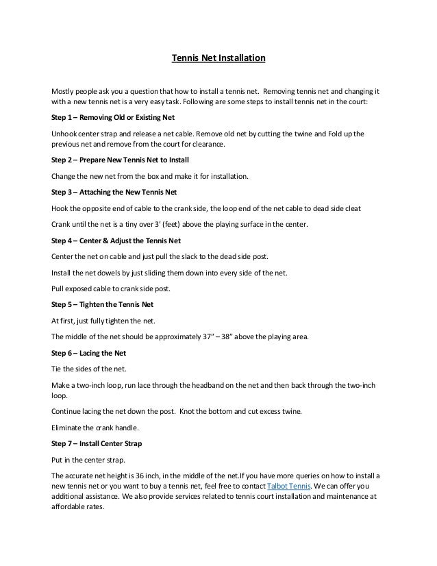 Talbot Tennis Bring You Tennis Net Installation Tips